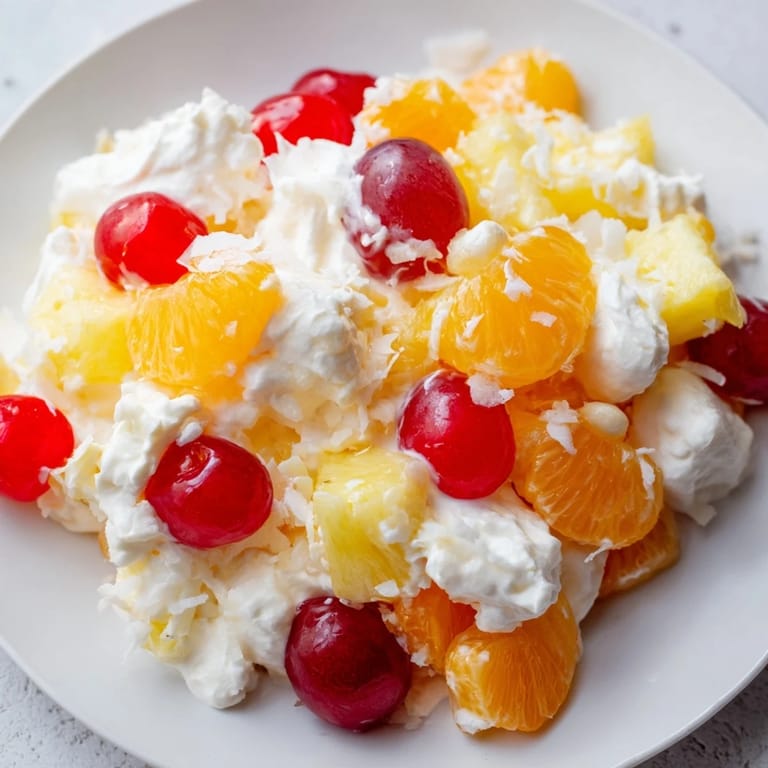 If you want to cut back on the richness, swap the sour cream and whipped topping for plain Greek yogurt. It will be tangier and less sweet, but still creamy enough to coat everything. You can also use unsweetened coconut and skip the nuts to trim calories without losing much flavor. I have done this version for brunch gatherings, and no one seemed to notice it was lighter until I mentioned it.
