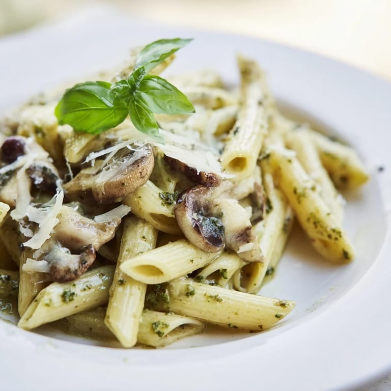 Penne and fettuccine both work beautifully here, but for different reasons. Penne catches the sauce in its tubes and holds onto bits of mushroom, while fettuccine lets the creamy pesto coat every ribbon. I usually go with whatever I have open in the pantry, and it's never been wrong. If you want to get fancy, try orecchiette, those little ear shapes cup the sauce like tiny bowls.