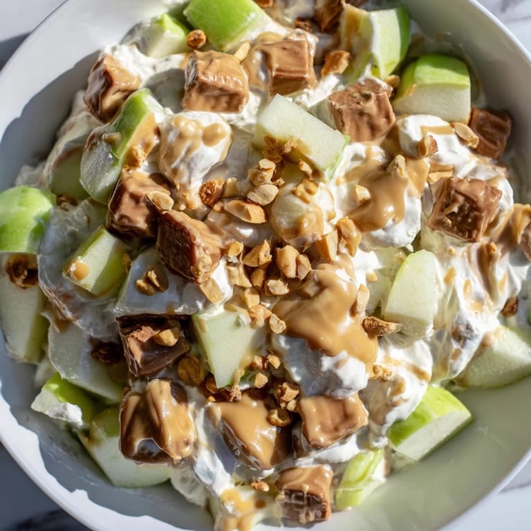 Save to Pinterest There's something about a potluck dessert that makes people lose their minds, and Snickers Salad is exactly that kind of dish—the one that disappears first and gets requested by name. I stumbled onto this recipe at a church gathering years ago, watching a woman pull it from her cooler while everyone else brought predictable brownies. One bite and I understood why she looked so smug about it. It's absurd in the best way: candy bars in a salad, whipped cream doing the heavy lifting, apples staying crisp somehow. I went home that night and made it twice before the week was over.