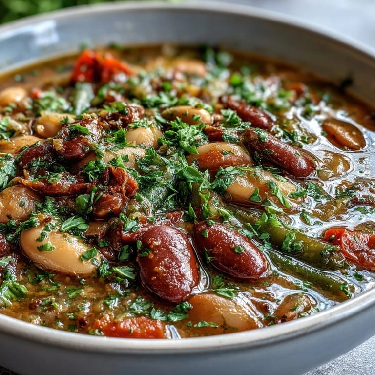 This soup has become my go-to when friends drop by because it looks impressive and tastes even better than it appears. The colorful beans floating in that golden broth make people think you spent all day cooking.