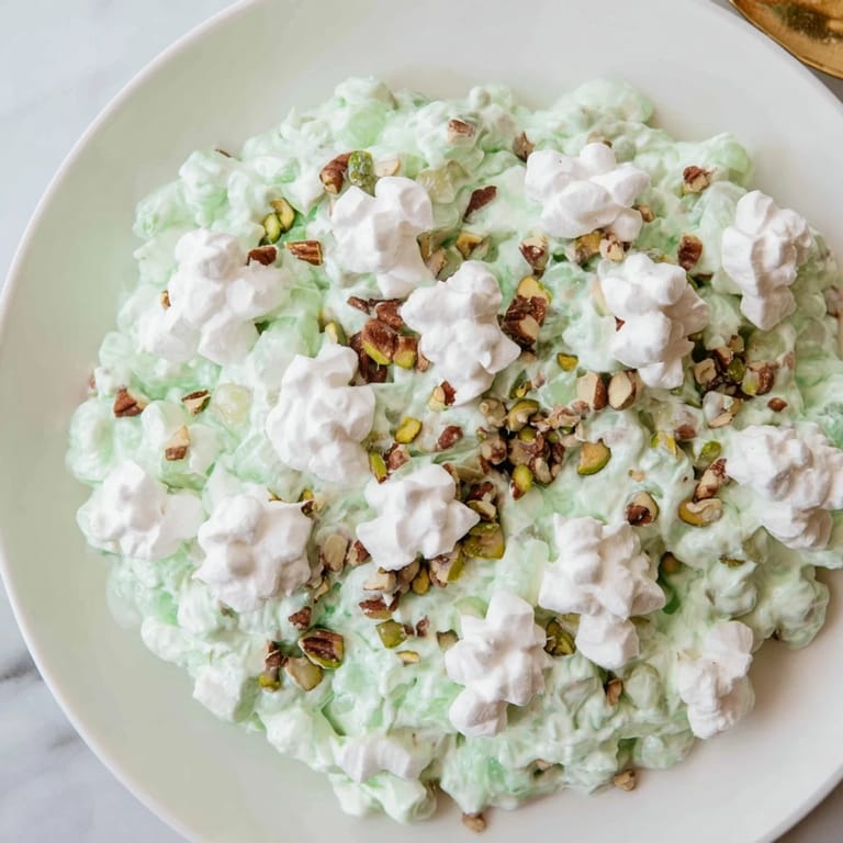 Save to Pinterest My grandmother's bridge club made Watergate Salad every summer without fail, and I spent my childhood watching it arrive at our potluck dinners in glass bowls that caught the afternoon light. The name always made me giggle—something about calling a dessert after a scandal felt wonderfully ridiculous. When I finally made it myself at twenty-three, standing in my first apartment's tiny kitchen, I realized the magic wasn't in any single ingredient but in how they all softened and mellowed together, becoming something greater than their parts. It's the kind of dish that carries its own nostalgia even for people who've never tasted it before.